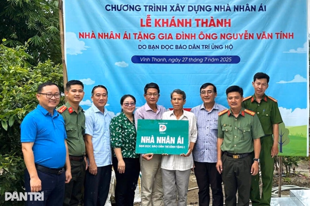 Ngày 27/7, tại xã Vĩnh Thanh, báo Dân trí đã phối hợp cùng Phòng An ninh kinh tế Công an tỉnh Cà Mau và chính quyền địa phương tổ chức lễ khánh thành nhà Nhân ái cho gia đình ông Nguyễn Văn Tính, 49 tuổi. Đây là ngôi nhà được xây dựng từ sự chung tay ủng hộ của bạn đọc Dân trí, với kinh phí hơn 130 triệu đồng.