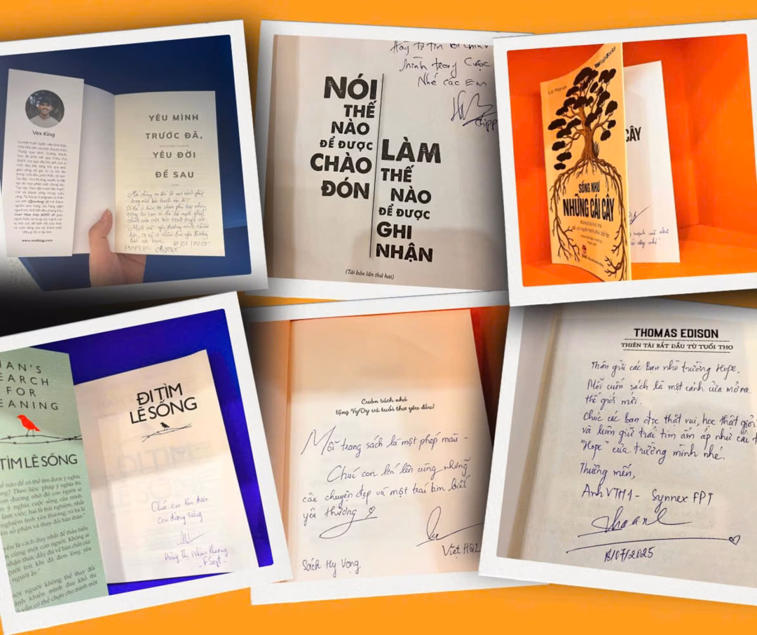 Không khí nhộn nhịp và tràn đầy cảm xúc đã kéo dài tại 9 điểm cầu của chương trình Sách Hy vọng, một hoạt động ý nghĩa diễn ra từ ngày 17 đến 25/7. Tại đây, những cuốn sách được trao đi kèm theo những lời chúc giản dị nhưng đầy cảm xúc, thể hiện sự quan tâm và sẻ chia của cộng đồng FPT dành cho học sinh Hope School.