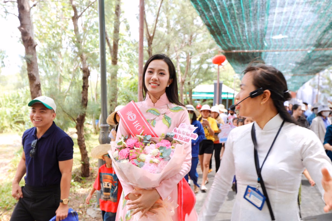 Hoa hậu Trúc Linh đã để lại ấn tượng sâu sắc khi diện áo dài truyền thống tại các địa điểm du lịch nổi tiếng như Ghềnh Đá Đĩa và tháp Nghinh Phong. Cô nàng đã thể hiện sự tự tin và duyên dáng khi khoe dáng trong bộ trang phục truyền thống Việt Nam.