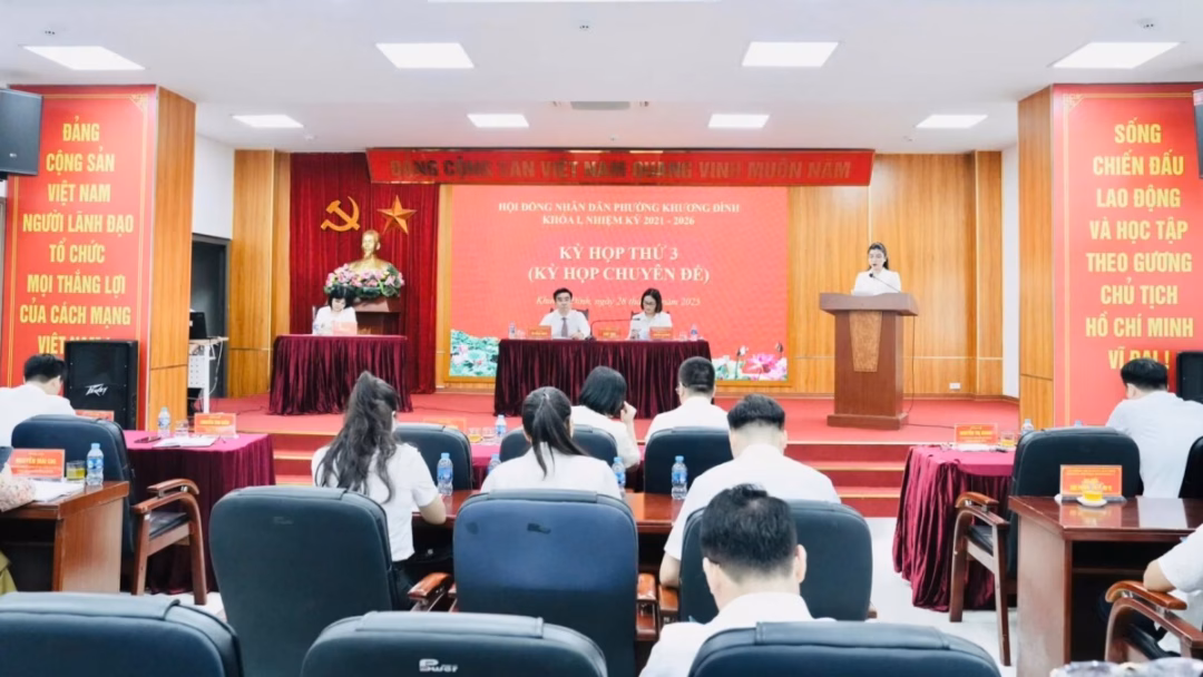 Ngày 28/7, Hội đồng nhân dân phường Khương Đình đã tổ chức Kỳ họp chuyên đề để xem xét và quyết định các nội dung quan trọng thuộc thẩm quyền. Kỳ họp này có sự tham gia của các thành viên Hội đồng nhân dân phường Khương Đình khóa I, nhiệm kỳ 2021-2026.
