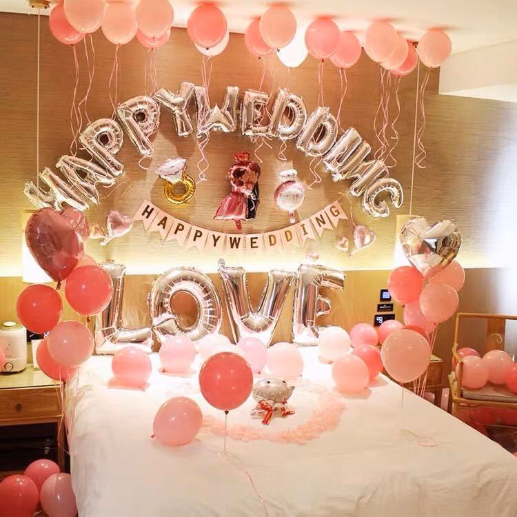 Mua bộ bóng bay trang trí phòng cưới tông hồng ở đâu?