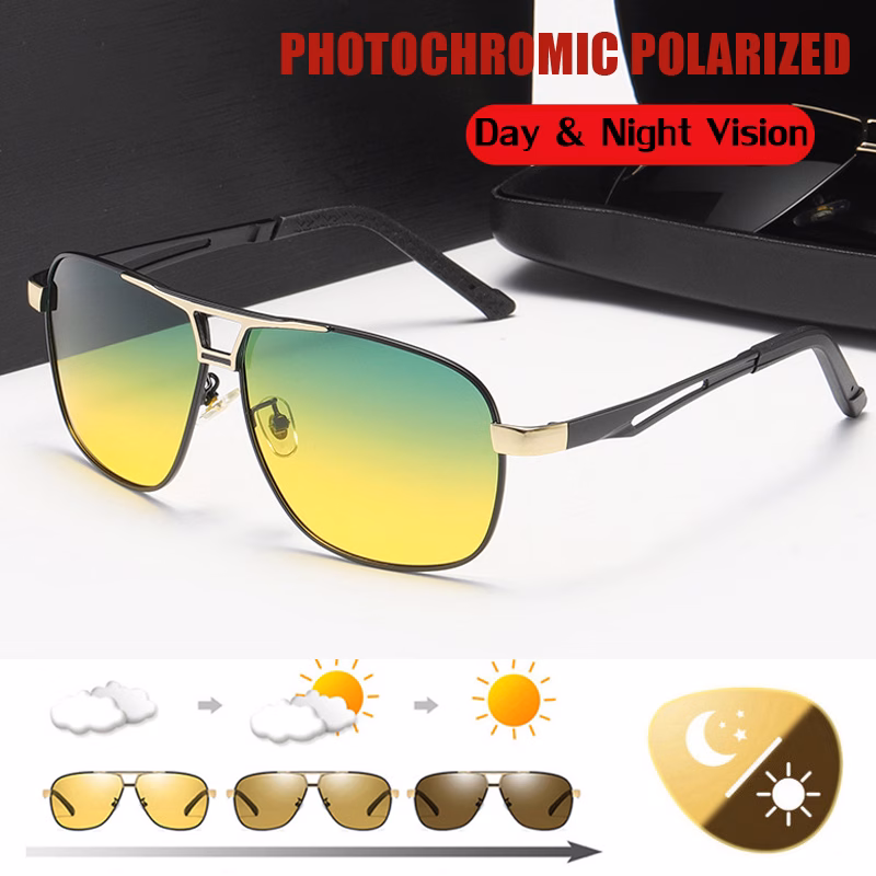🔥 Kính râm tầm nhìn ban đêm photochromic phân cực Kính bảo hộ ngoài trời Ống kính UV400 ngày và đêm Kính râm lái xe nam đang giảm giá!