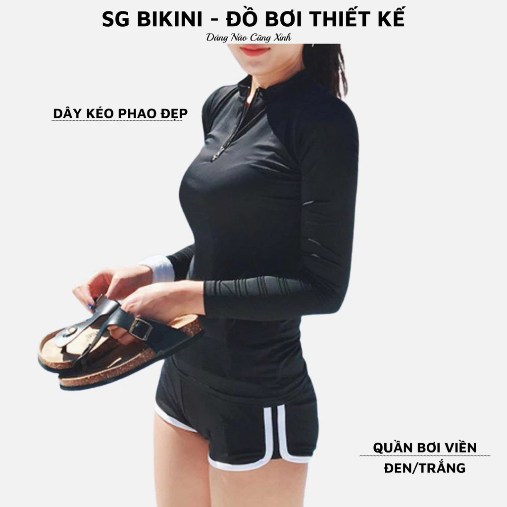 🔥 Bộ bơi nữ áo bơi dây kéo phối quần đùi viền màu Bikini SG đi bơi và du lịch biển xinh đang giảm giá!