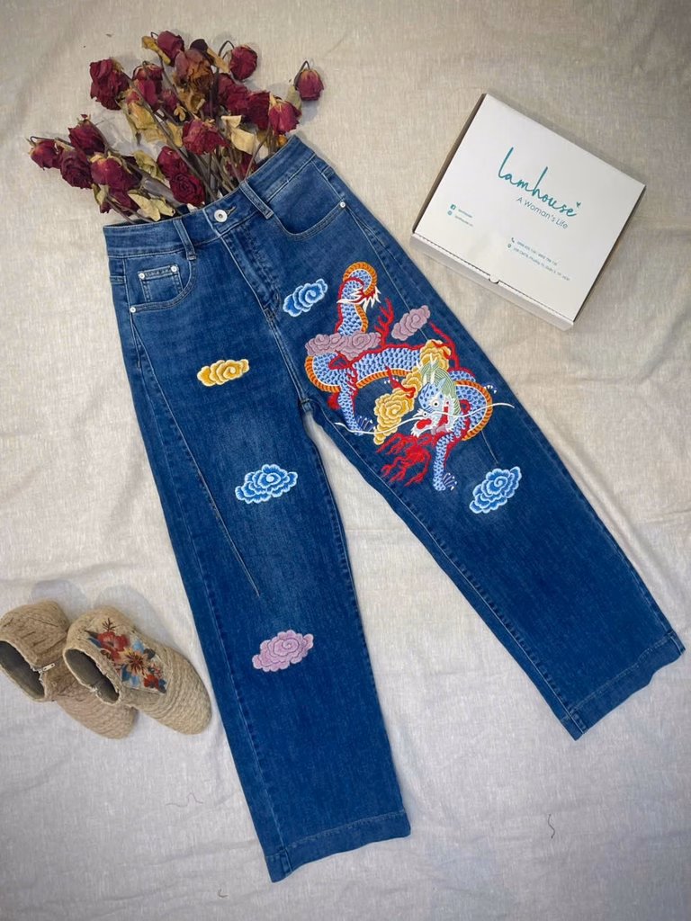 Mặc Quần Jeans Dài Thêu Hình Rồng Có Khó Phối Đồ?