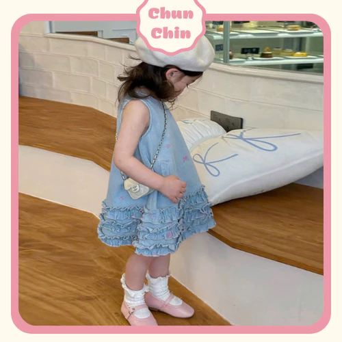 🔥 V104 Chun Chin | Váy Jean SN Phối Bèo Thêu Hello Kitty Cho Bé Gái 1-7 tuổi Hàn Quốc, Mềm Mịn Mát đang giảm giá!