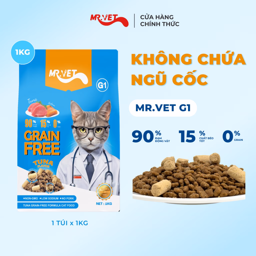 Thức Ăn Cho Mèo MRVET Dạng Hạt G1 Không Chứa Ngũ Cốc