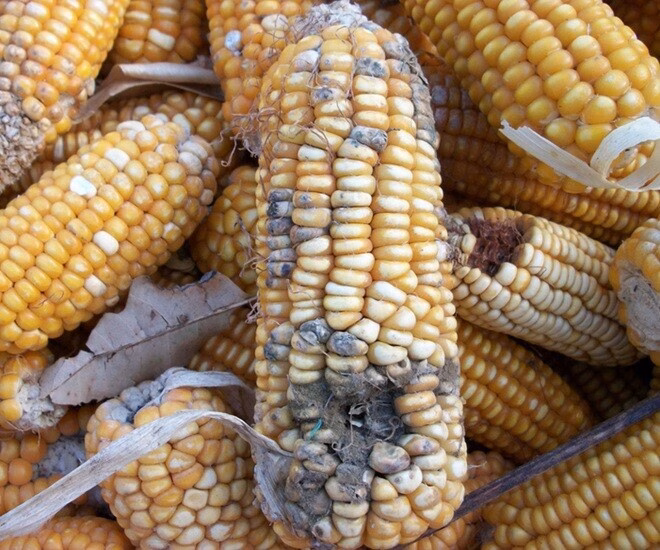 Các loại hạt bị mốc là một trong những thực phẩm nguy hiểm. Với thời tiết mưa nhiều và độ ẩm cao, các loại hạt như lạc, ngô, gạo rất dễ bị mốc nếu không được bảo quản cẩn thận. Khi ăn phải các loại hạt mốc, nguy cơ nhiễm chất aflatoxin là rất cao. Aflatoxin là một chất đã được xác định là chất gây ung thư loại 1 bởi Viện nghiên cứu ung thư của Tổ chức Y tế Thế giới. Độc hại của aflatoxin gấp 68 lần so với asen, và chỉ cần một lượng nhỏ cũng có thể gây tổn thương gan, làm tăng nguy cơ ung thư.