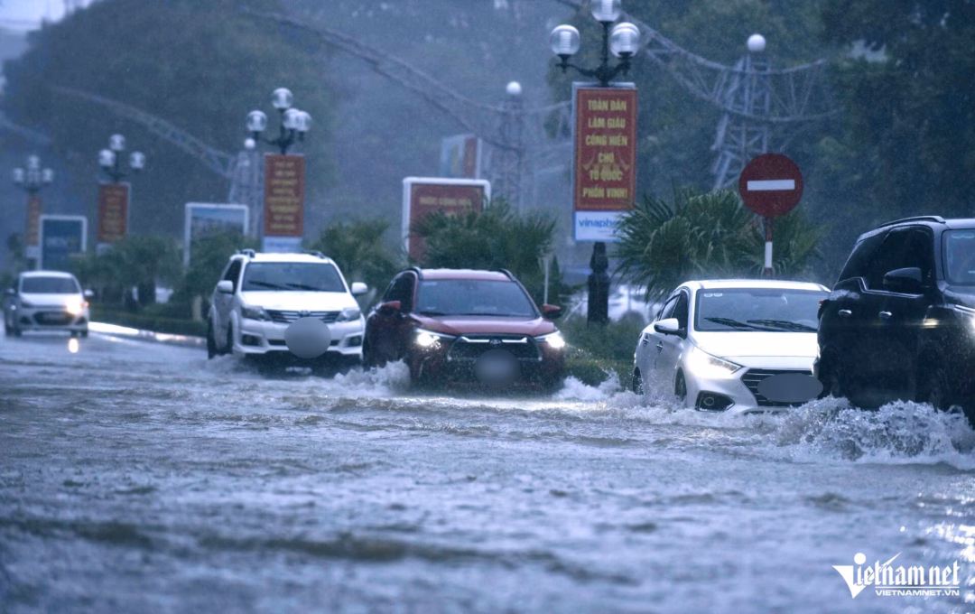 Theo ghi nhận của phóng viên, mưa lớn đã bắt đầu từ sáng sớm tại nhiều địa phương ở Thanh Hóa. Đến khoảng 9 giờ ngày 22/7, tình trạng ngập cục bộ đã xảy ra ở nhiều nơi. Tại phường Hạc Thành, các tuyến đường chính như Đại lộ Lê Lợi, Trường Chinh, ngã tư Bưu Điện… đều bị ngập sâu. Nước ngập đến nửa bánh xe ô tô, gây khó khăn cho việc lưu thông của các phương tiện.