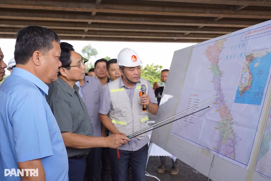 Trước hết, Thủ tướng đã đến kiểm tra dự án Cao tốc Vạn Ninh – Cam Lộ tại nút giao với đường Hồ Chí Minh và đường tỉnh 575, tọa lạc tại xã Cồn Tiên, tỉnh Quảng Trị. Đây là một phân đoạn quan trọng thuộc Dự án xây dựng đường bộ cao tốc Bắc – Nam phía Đông giai đoạn 2021-2025, với tổng mức đầu tư lên tới gần 10.000 tỷ đồng. Tính đến thời điểm hiện tại, khối lượng công việc chính của dự án cơ bản đã hoàn thành, chỉ còn lại việc hoàn thiện 3 cầu vượt, nút giao và các hạng mục đảm bảo an toàn giao thông. Các nhà thầu đang nỗ lực thi công với nhịp độ “3 ca 4 kíp” không ngừng nghỉ, đặt mục tiêu hoàn thành vào cuối tháng 7 hoặc đầu tháng 8 và đưa vào khai thác vào dịp 19/8.