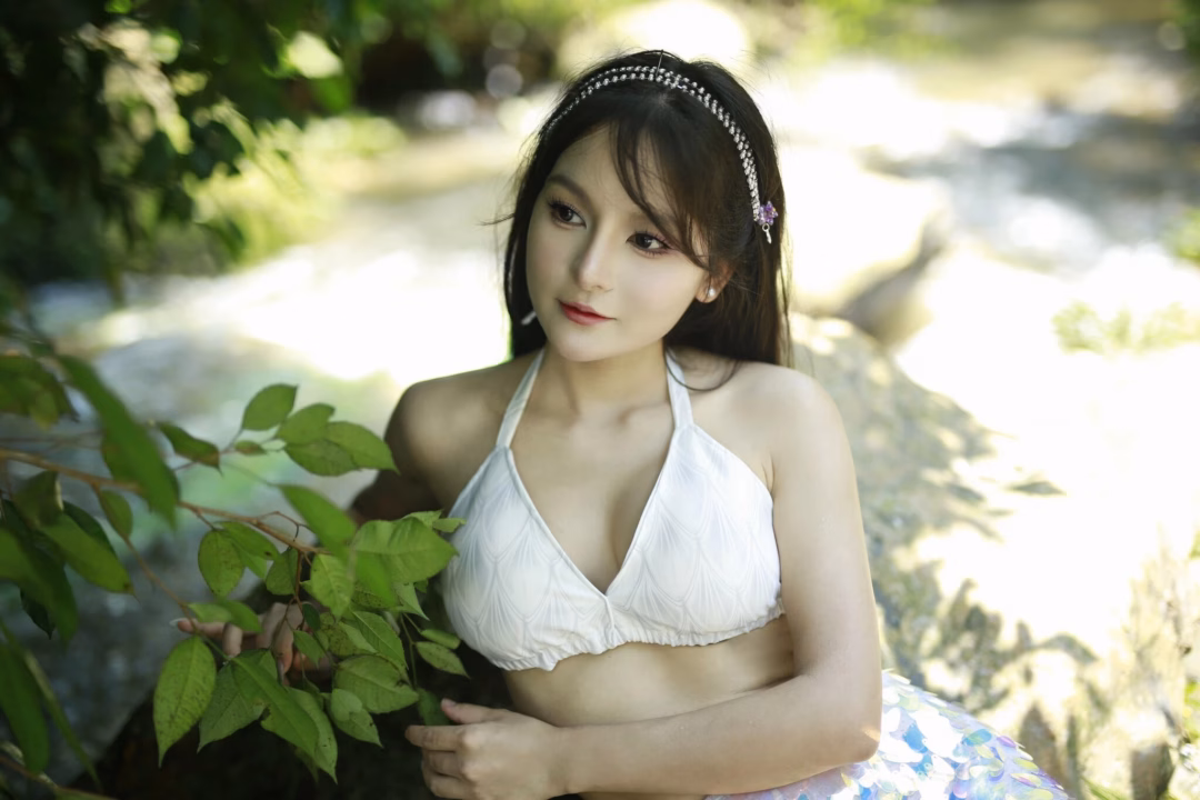 Thay vì chọn bối cảnh là những thành phố tấp nập, hay những làn nước sâu thẳm thường thấy trong các dự án trước, nữ diễn viên chọn một khung cảnh thanh bình và thơ mộng – bên dòng suối. Nơi đây, cây cỏ xanh mướt bao quanh, không chỉ mang đến một không gian yên tĩnh, mà còn tôn lên vẻ đẹp tự nhiên, thanh thuần của Bùi Ngọc Ánh. Sự kết hợp giữa con người và thiên nhiên đã tạo nên một bức tranh tuyệt đẹp, phản ánh sự hòa hợp giữa tâm hồn và cảnh vật.